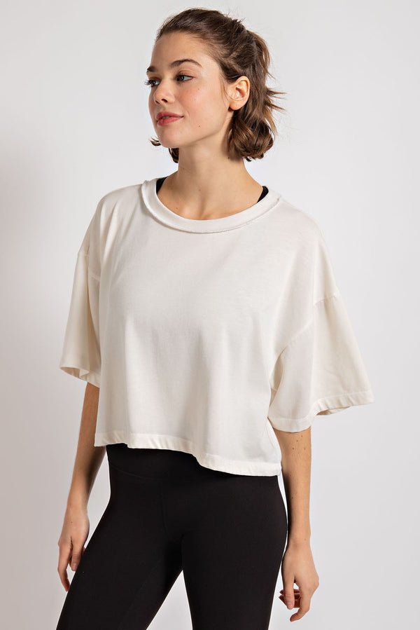 Mineral Washed Oversized Crop Top | Off White