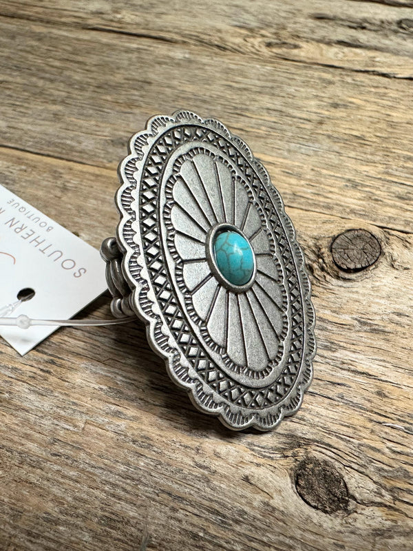 Western Beaded Stretch Ring | Antique Silver+Turquoise