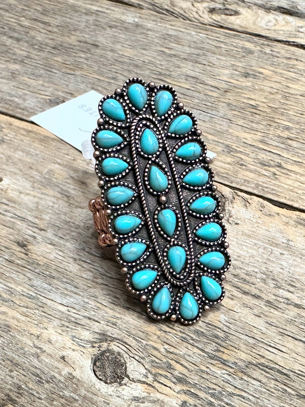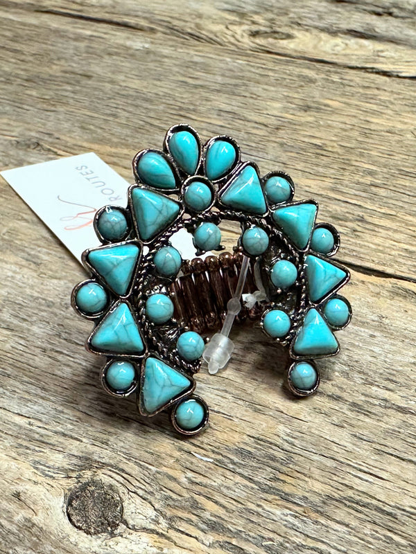 Western Beaded Stretch Ring | Antique Copper+Turquoise