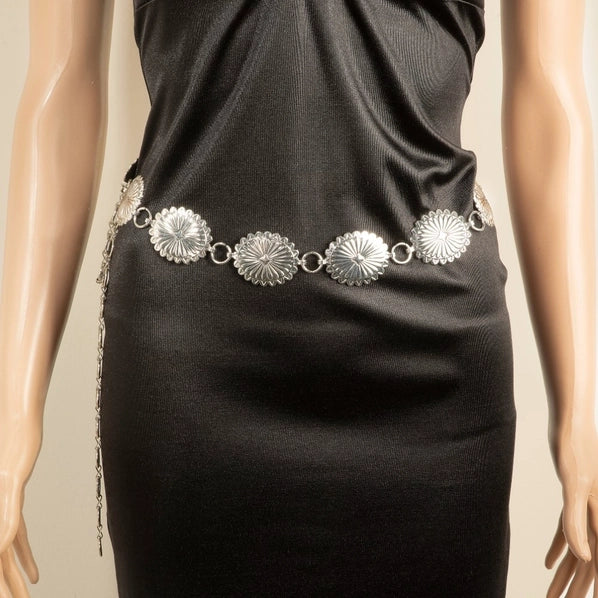 Western Flower Concho Chain Belt | Silver