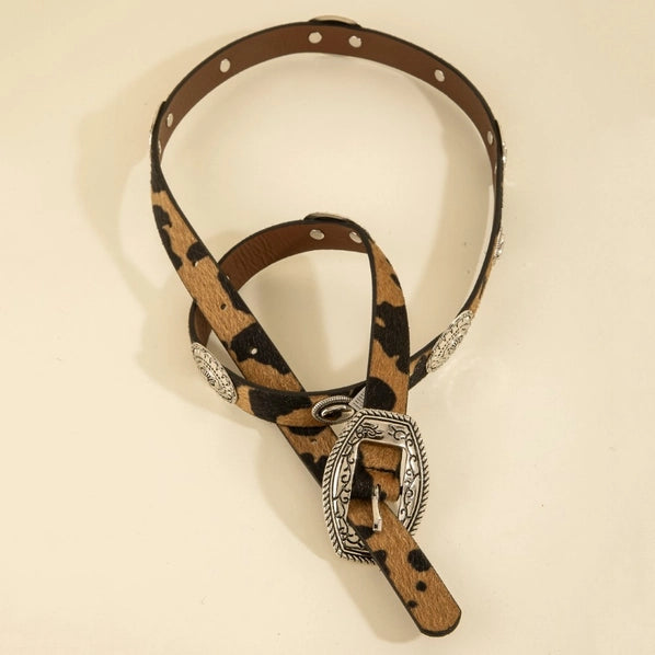 Western Concho Accent Belt | Leopard/Silver