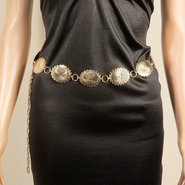 Western Flower Concho Chain Belt | Gold