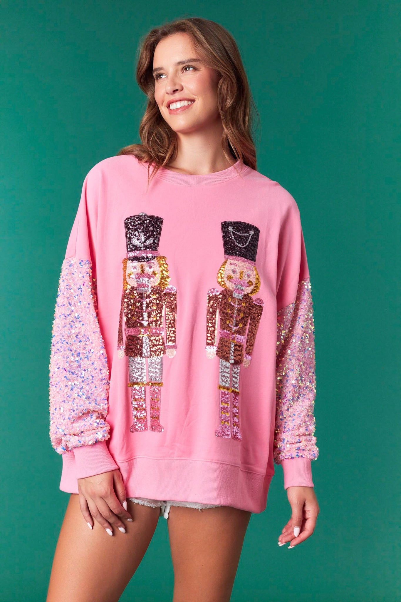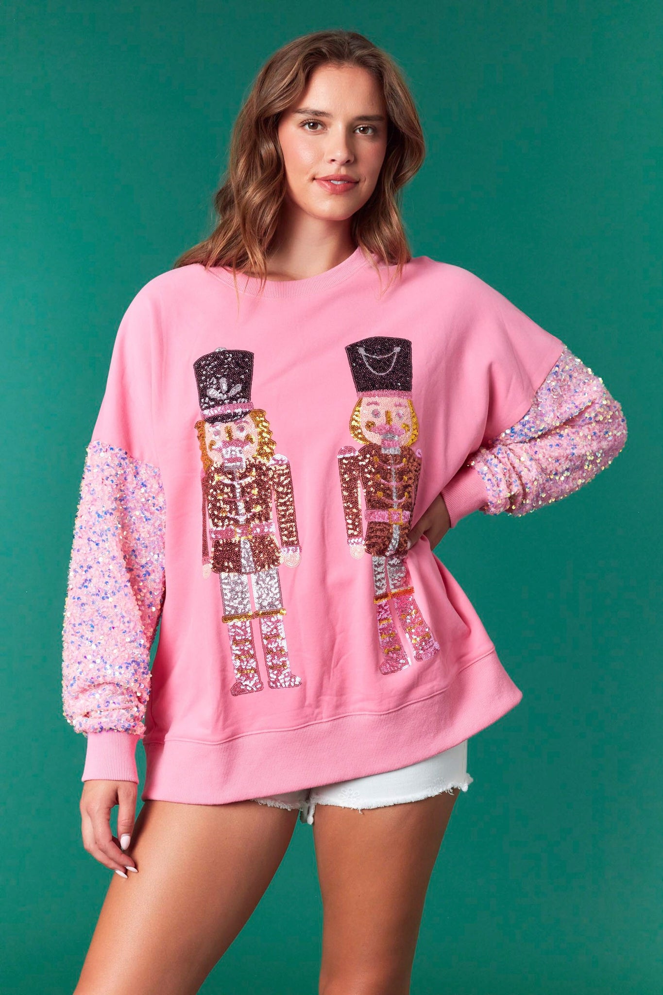 Nutcracker Velvet Sequin Sweatshirt | Pink
