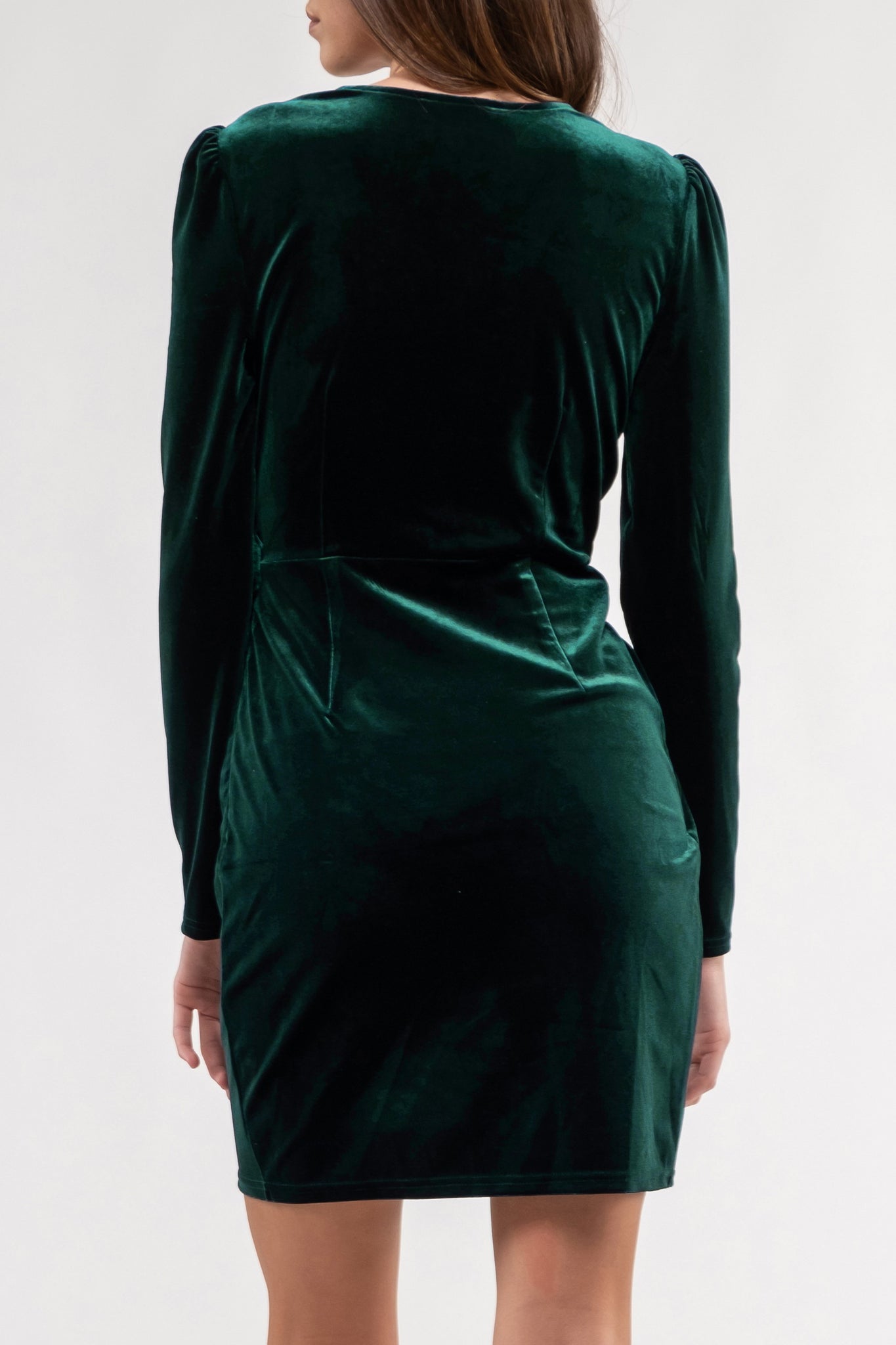 Gorgeous long sleeve velvet wrap mini dress featuring a front tie.