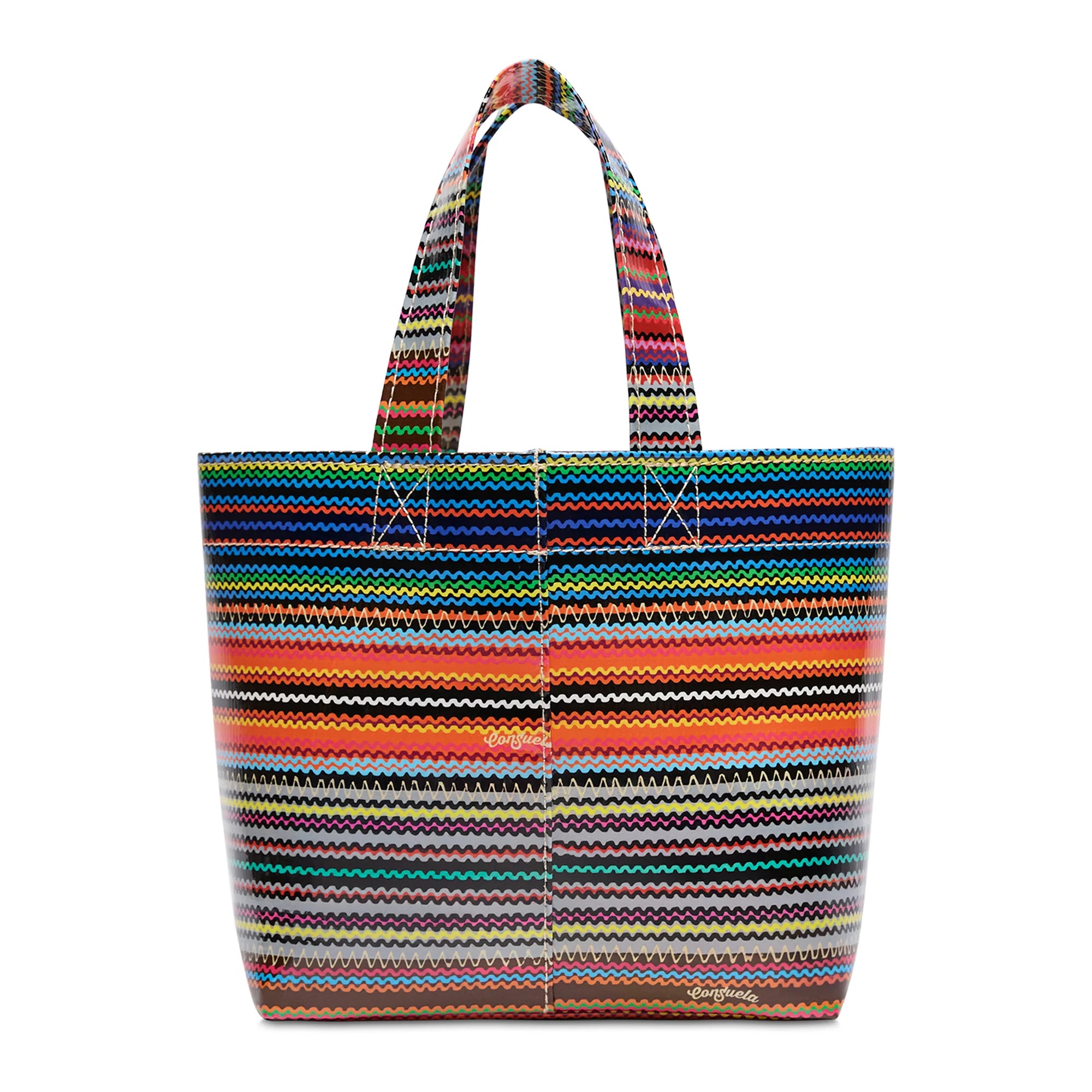 The Mini Bag was made for the little moments- carrying keys and a snack for a walk on the beach, lunch and a cold brew to the office, or for waiting patiently in the car, folded neatly under your seat. This bag made of easy-to-clean ConsuelaCloth™ is the smallest of our colorful utility totes.