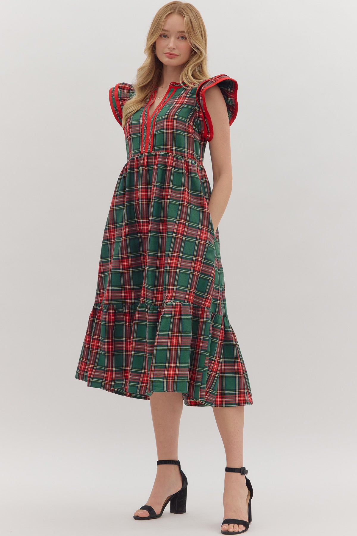 Collared Flutter Sleeve Dress | Forest Green