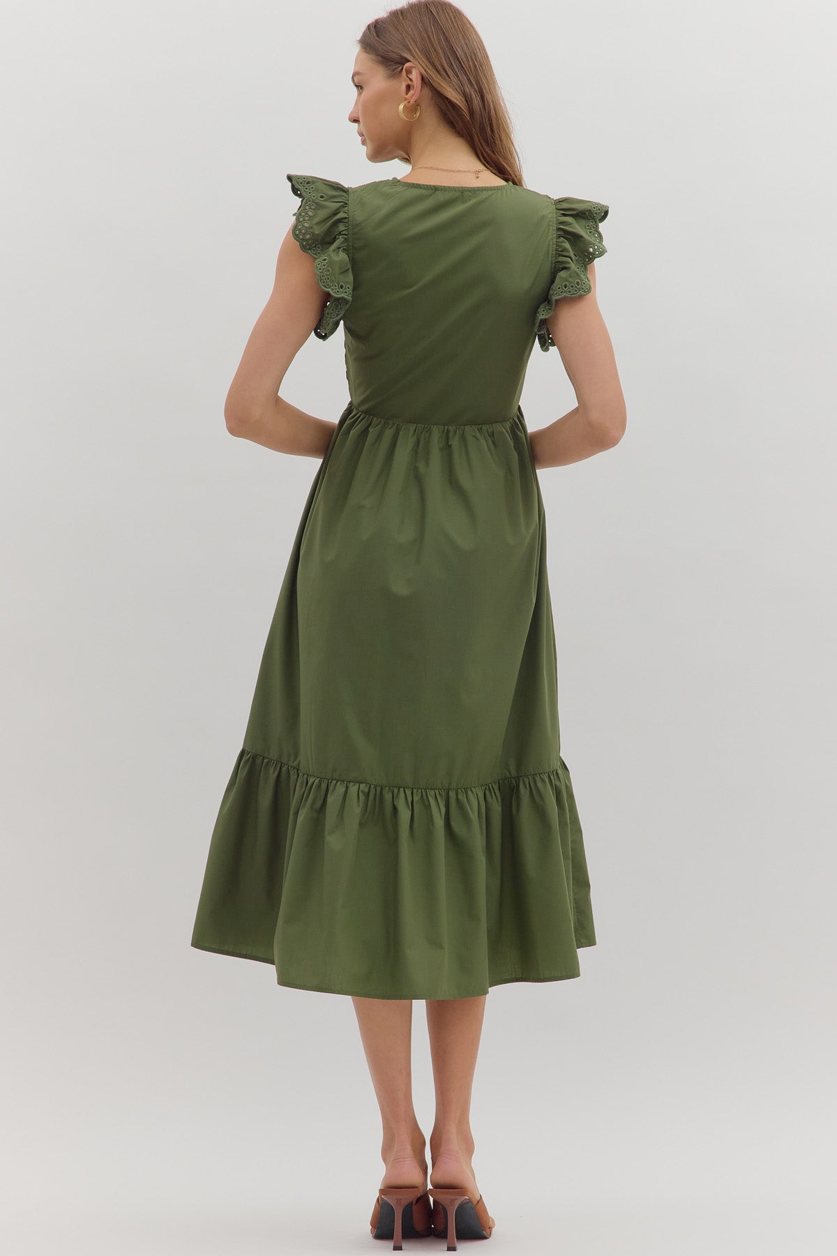 Smocked Zip Flutter Sleeve Midi Dress | Black