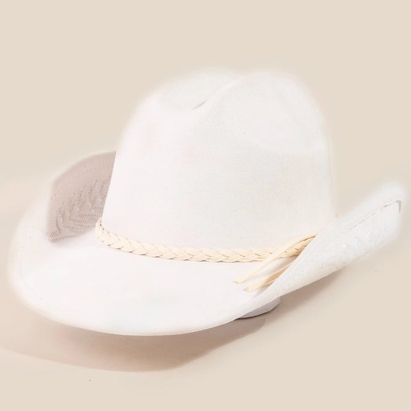 Vegan Suede Pencil Brim Rancher Hat w/ Band | Ivory