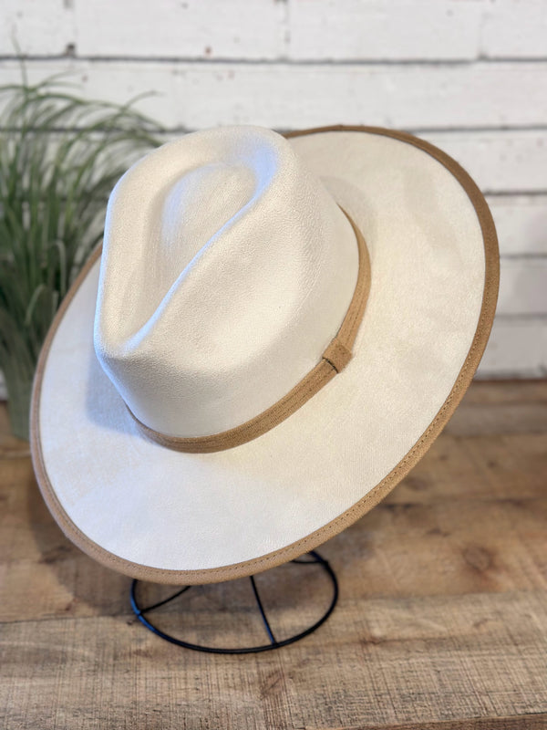 Vegan Suede Flat Brim Rancher Hat | Ivory/Tan