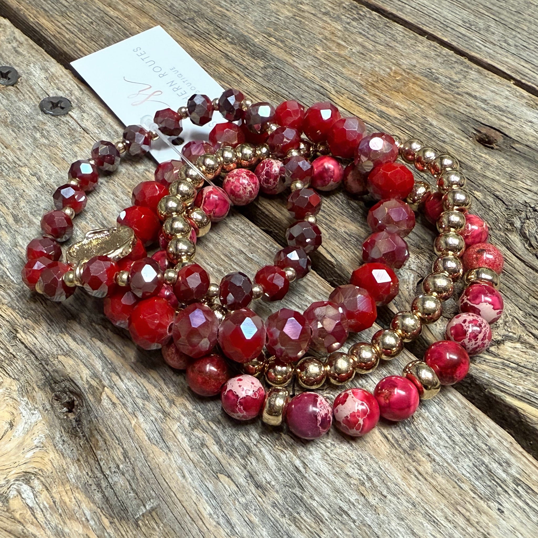 Stretchy Beaded Bracelet Set | Chunky Silver Gold Crystal