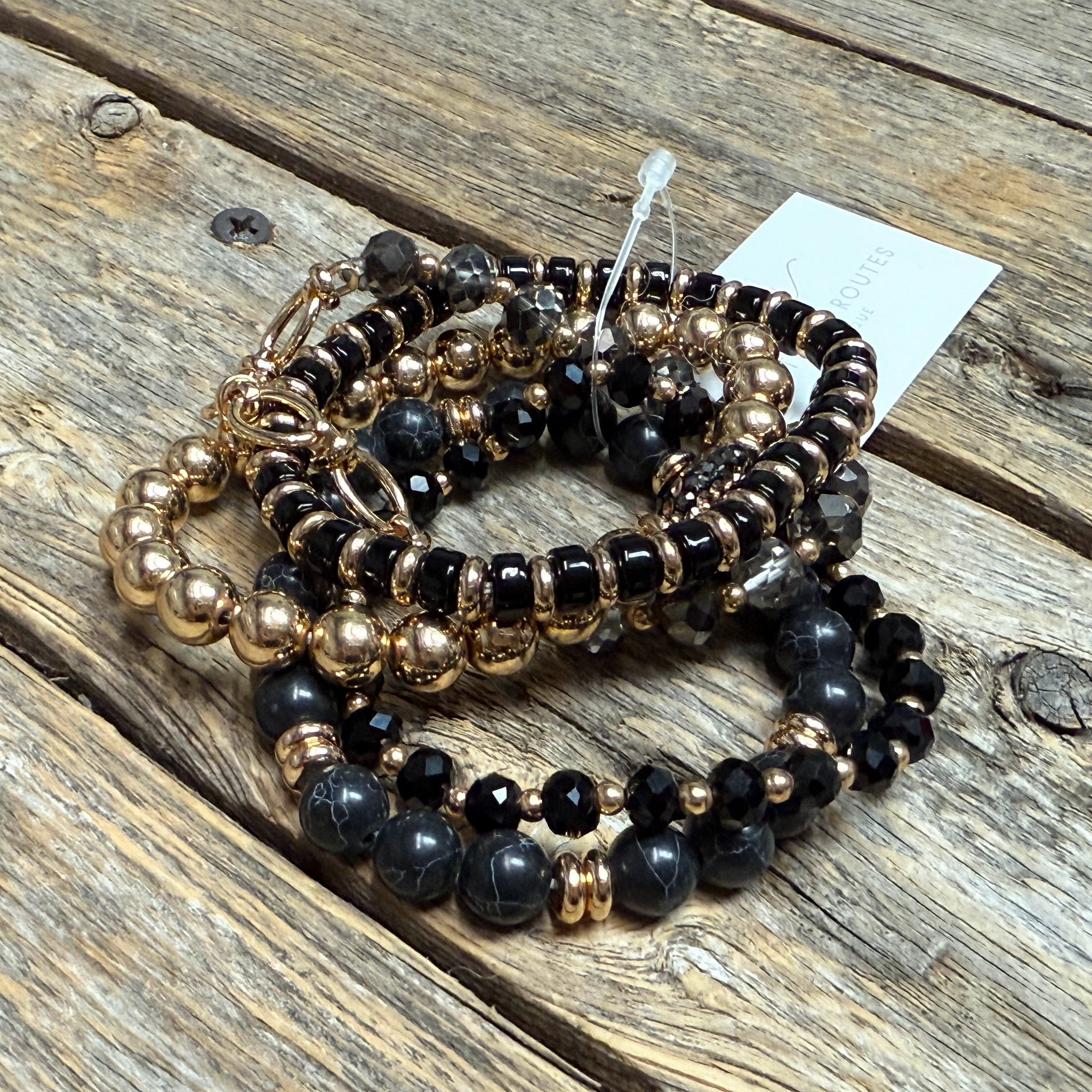 Stretchy Beaded Bracelet Set | Black Gold Chain Mix