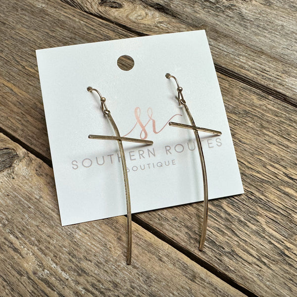 Curved Metal Cross Earrings | Gold