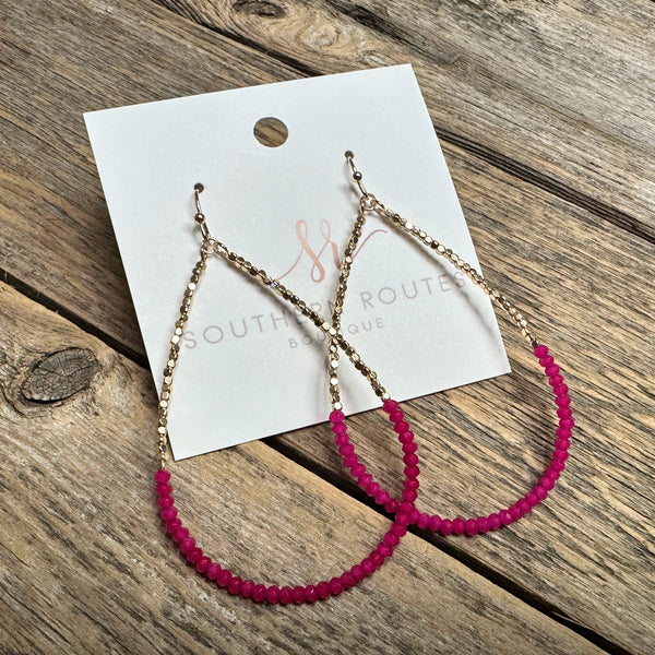 Beaded Golden Nugget Teardrop Earrings | Fuchsia
