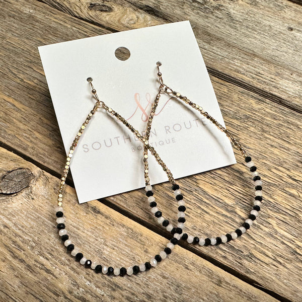 Beaded Golden Nugget Teardrop Earrings | Black+White