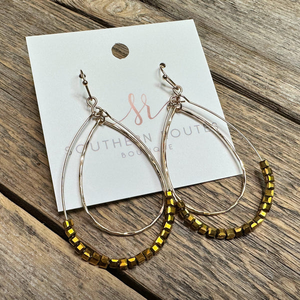Beaded Wire Teardrop Earrings | Gold
