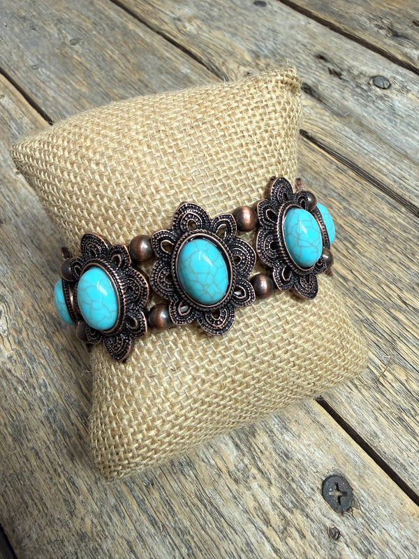 Western Bracelet Set | Squash Blossom Ivory Copper