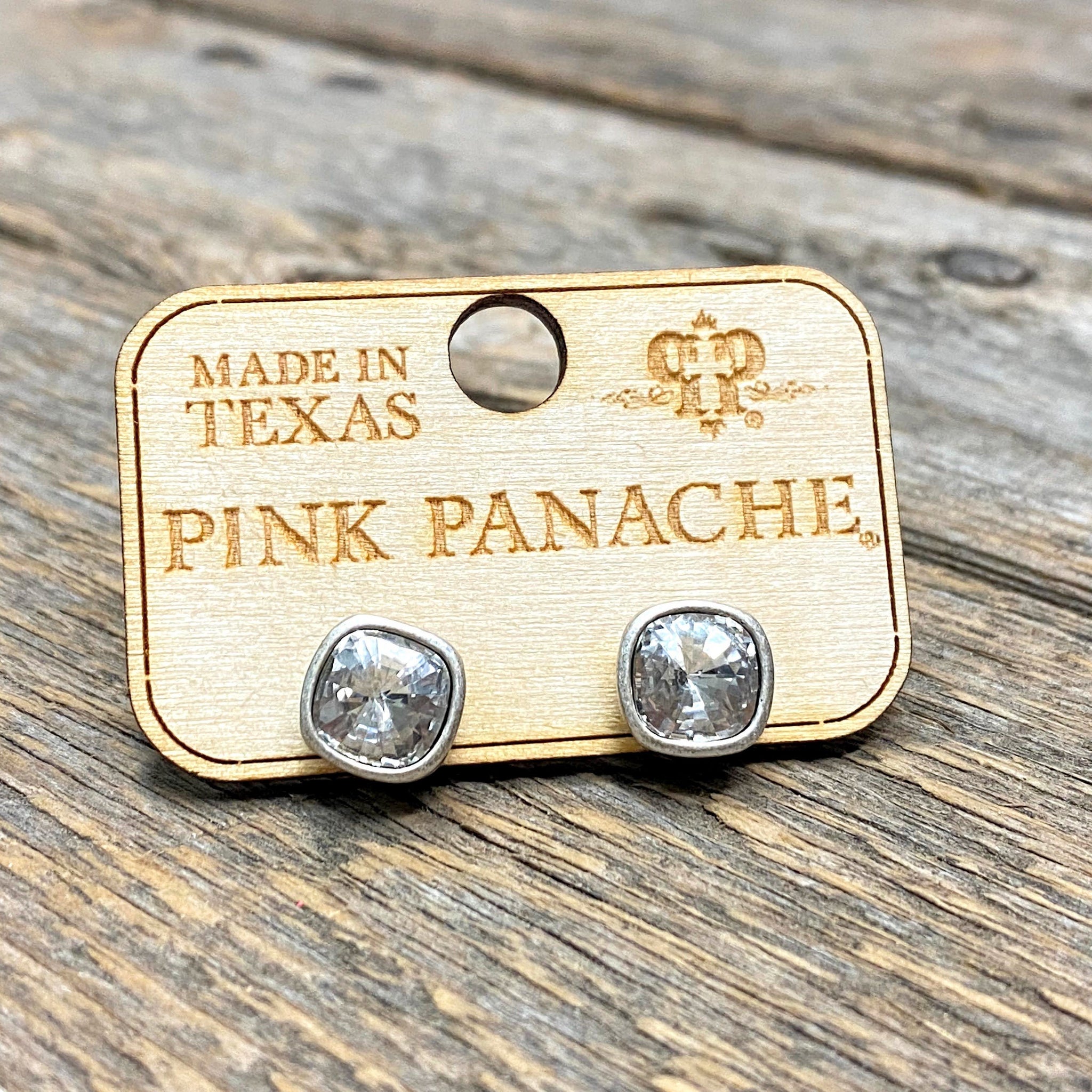 Clear Crystal | 12mm Bronze Studs | Pink Panache