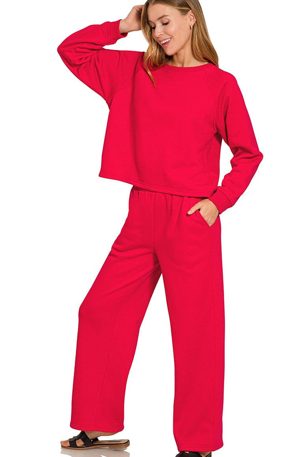 Fleece Raglan Sleeve Sweatpants 2 PC Set | Ruby