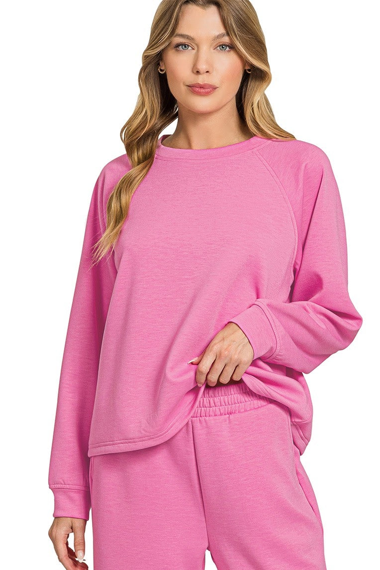 Scuba Sweatshirt & Wide Sweatpants 2 Piece Set | Candy Pink