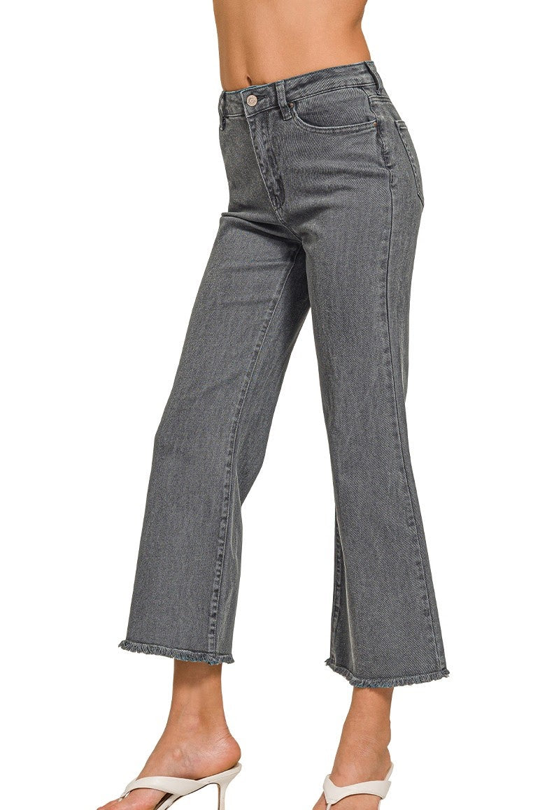 Stretch Denim | Acid Washed | Frayed Hem | Cropped Bootcut Fit