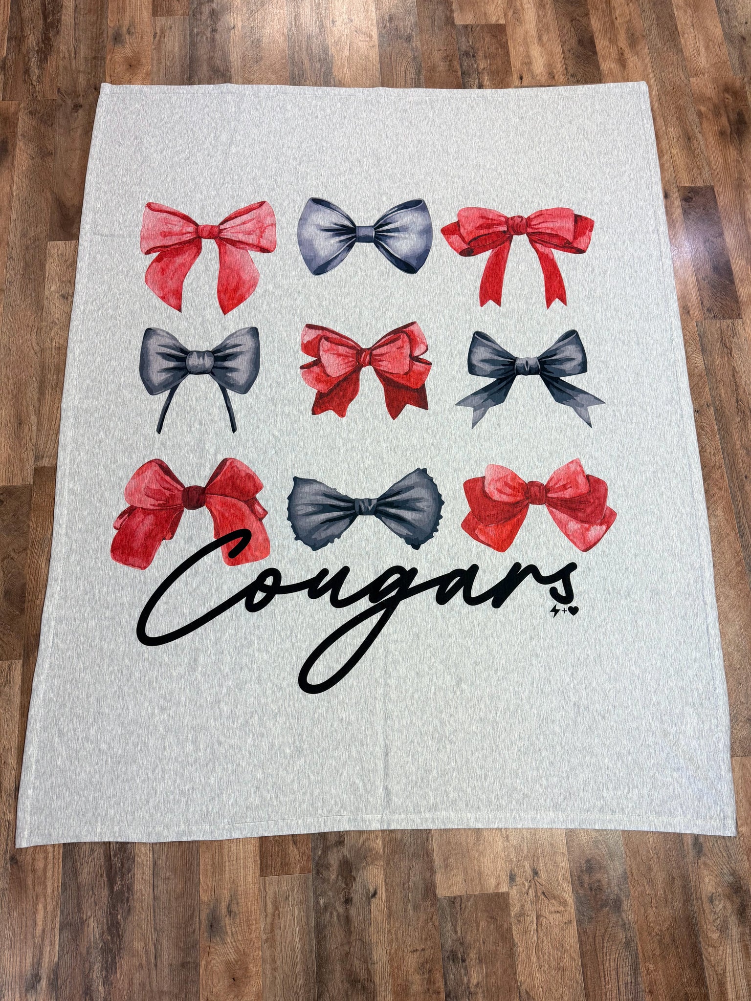 Ribbon Bow Cougars Sweatshirt Blanket | Ash Grey