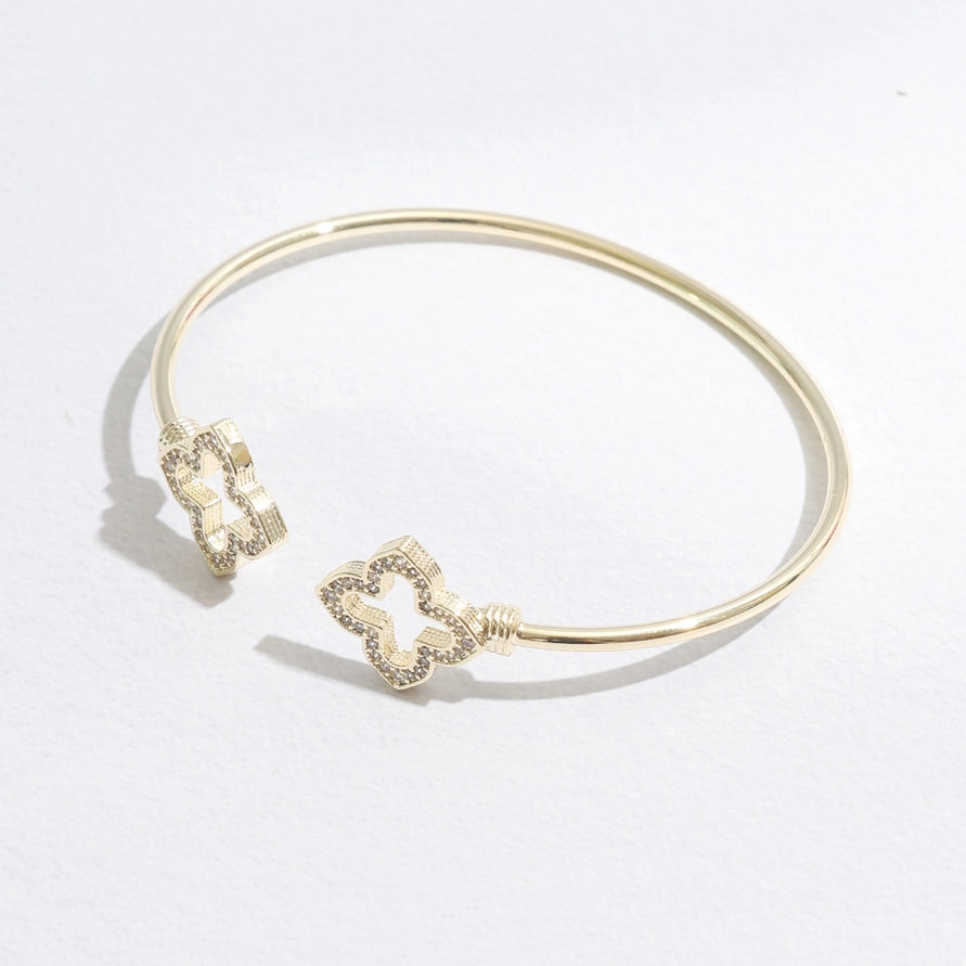 Thin Bangle CZ Outlined Cross Edge Bracelet