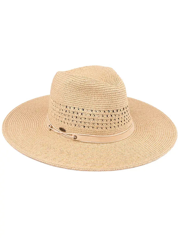 C.C Straw Faux Leather Band Sun Hat | Sand