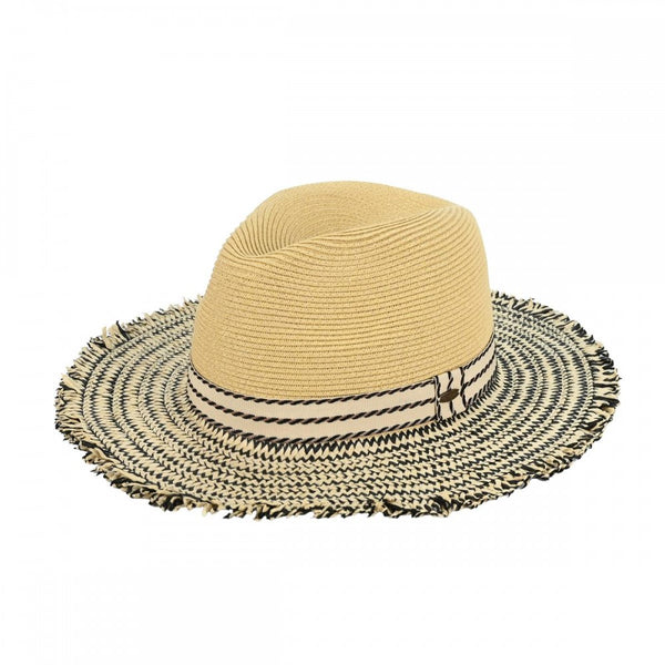 Two Tone Straw Panama Sun Hat | Beige+Natural