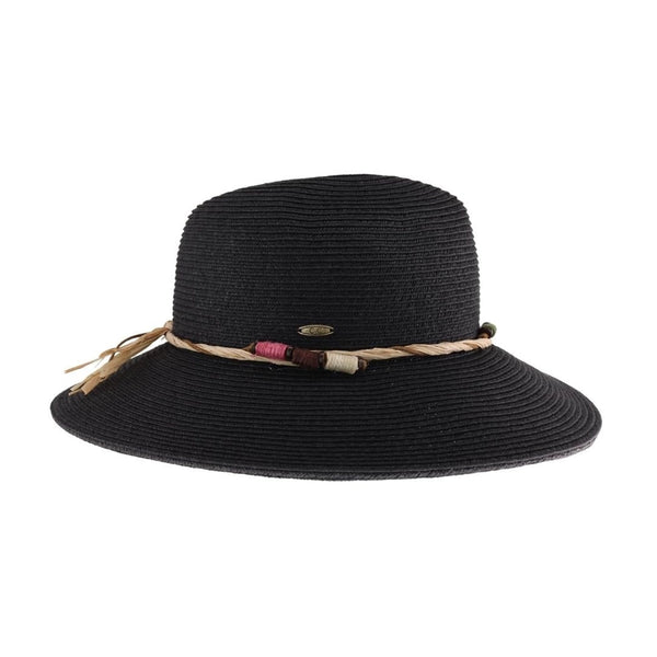 Open Weave Bow Trim Panama Sun Hat | Natural+Black